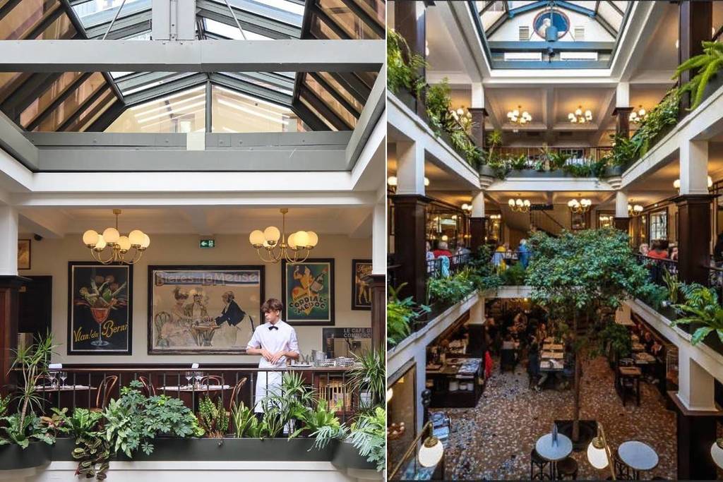 In seinem prächtigen, denkmalgeschützten Dekor wird Ihnen eine Sache sofort auffallen: das Licht, das das Restaurant den ganzen Tag über durchflutet. Mit seinen großen Glasfenstern und den üppigen Pflanzen, die überall auf den drei Etagen des Café du Commerce zu finden sind, ist es ein Ort der Abwechslung. Mit seinem Mosaikboden aus bunten Kacheln, seinen schwarz-weiß gekleideten Kellnern und seiner altmodischen Dekoration weht hier ein sanfter Duft des alten Frankreichs, wie wir ihn lieben. Ein Ort mit einer Seele und einer schönen Geschichte!