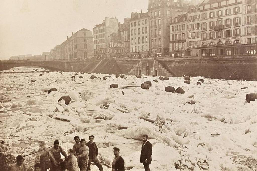 Diese Ruhe kündigte jedoch eine der chaotischsten Episoden in der Pariser Wintergeschichte an. Als die Temperaturen endlich stiegen, zerbrach das Eis in riesige Blöcke, die mit ungeahnter Gewalt flussabwärts befördert wurden. Das Debakel riss ganze Kähne ab, versetzte Flöße, beschädigte Kais und ließ alles, was sich ihm in den Weg stellte, in die Luft fliegen. Was Paris ein paar Tage zuvor noch verzaubert hatte, wurde nun zu einer echten Gefahr, die stark genug war, um die Behörden in Panik zu versetzen. Schließlich kehrte nach einigen Tagen und unter großer Anstrengung der mobilisierten Rettungsmannschaften alles wieder in Ordnung.