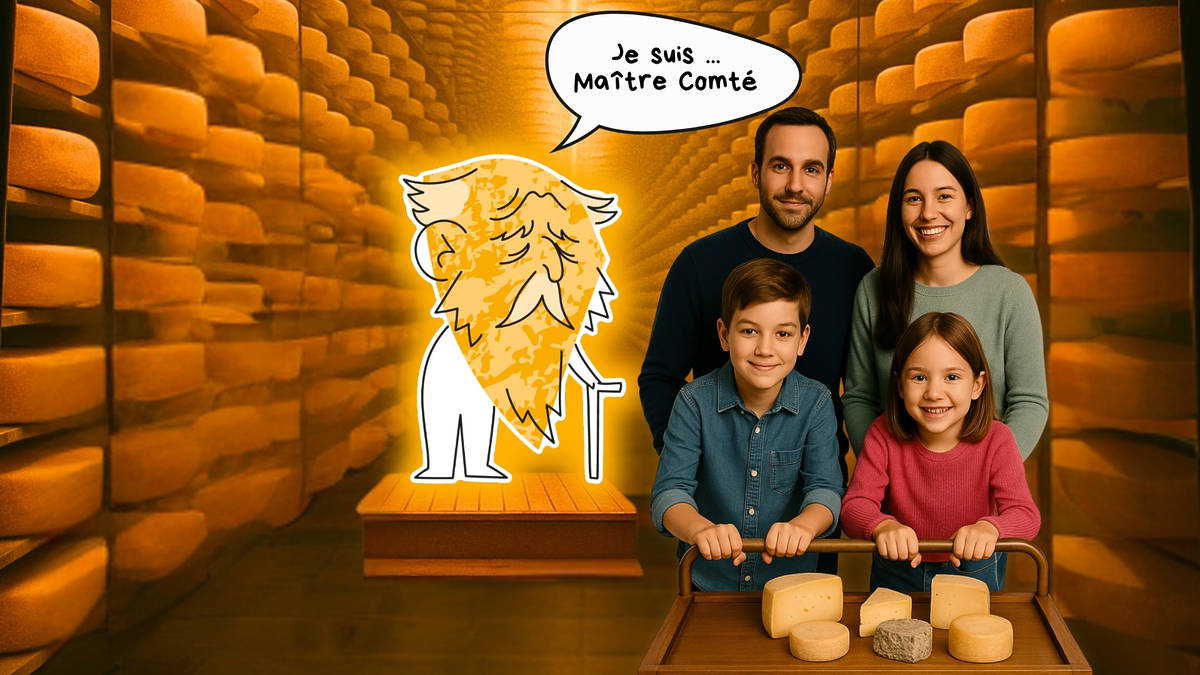 Das Konzept: Sie nehmen an einer Masterclass teil, die von den Käsen selbst gegeben wird, die in 3D personifiziert werden . Als nicht zu vernachlässigenden Bonus schieben Sie Ihren Käsewagen, den Sie während des gesamten Parcours verkosten und mit Getränken (Wein oder Fruchtsaft) kombinieren, um perfekte Übereinstimmungen zu erzielen.