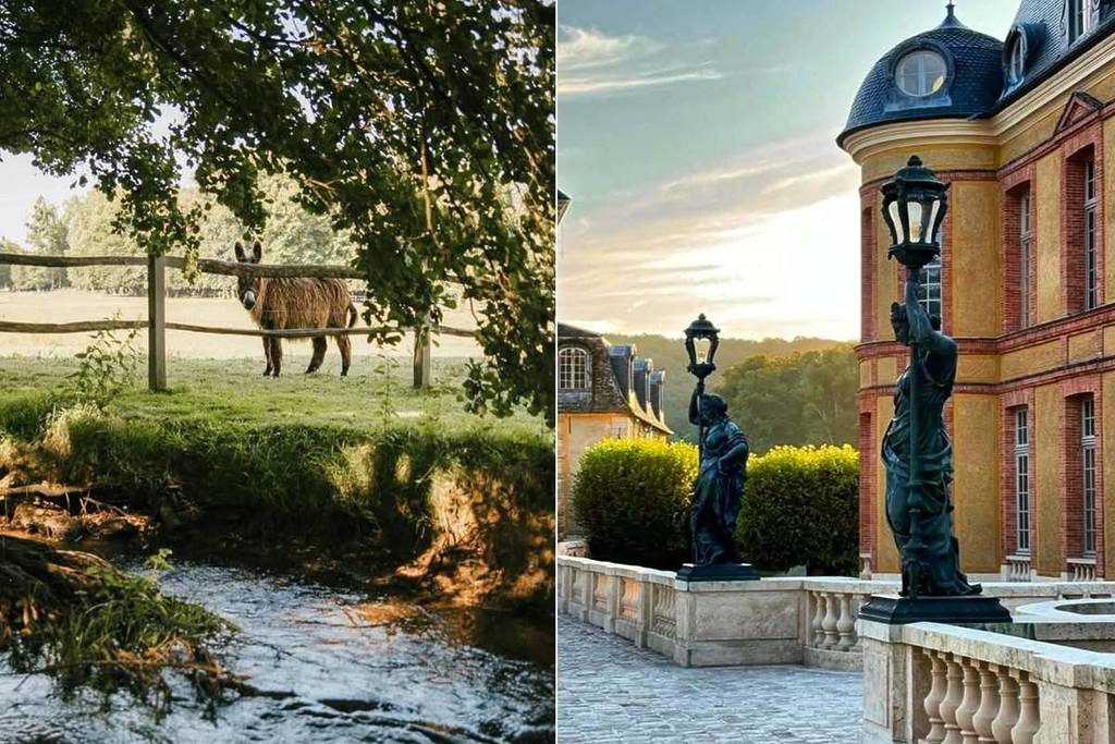 Con su gran estanque, sus fuentes animadas con diferentes juegos de agua y sus diversos senderos por los que pasear, la finca ofrece numerosos puntos de vista especialmente agradables que te encantará descubrir. Además, puedes pasear a pie, en carruaje, en rosalies o en golfettes para descubrir su sorprendente y preservada fauna y flora: zorros, jabalíes, gamos, corzos, diferentes aves… Algo que maravillará a grandes y pequeños. Aunque el interior y el exterior del castillo están en obras de renovación desde 2023, todavía es posible recorrer sus maravillosos jardines, navegar en barca por sus estanques, visitar su minigranja con sus adorables ovejas, burros y gallinas, o incluso jugar a ser cuidador por un día…