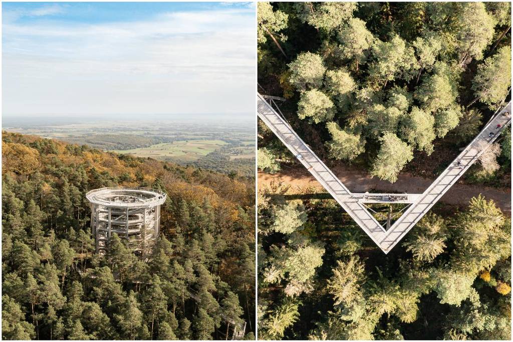 Il Chemin des Cimes è un sentiero sospeso di 1.050 m che si snoda tra le cime della foresta fino a una torre panoramica alta 29 m. Accessibile anche alle famiglie con passeggini e alle persone con mobilità ridotta grazie a una leggera pendenza, questo percorso unisce scoperta, gioco e natura, con stazioni didattiche sulla fauna e la flora locali. In cima, il panorama a 360° sulla pianura del Reno, la Foresta Nera e i Vosgi settentrionali è uno spettacolo mozzafiato e, con il bel tempo, potrete persino vedere la cattedrale di Strasburgo!