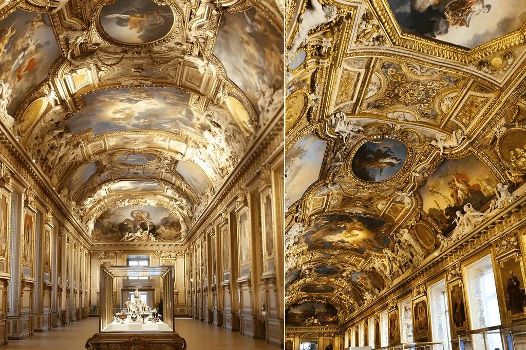 Al progetto parteciparono i più grandi artisti, tra cui Charles Le Brun e Eugène Delacroix. Delacroix creò uno dei dipinti più impressionanti della galleria: Apollo sconfigge il serpente Pitone, alto 12 metri! Vent’anni dopo la sua realizzazione, la Galerie d’Apollon servì da modello per la Sala degli Specchi del Castello di Versailles, dove il Re Sole visse per gran parte del suo regno.