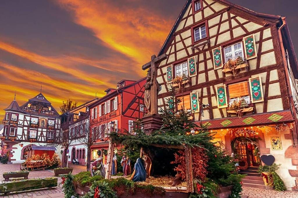 Élu « village préféré des Français » en 2017, ce charmant bourg de l’est est aussi connu pour abriter le plus beau marché de Noël d’Alsace. À quelques heures de Paris en train, on peut profiter de cette pépite pour vivre une belle escapade féérique pour les fêtes !