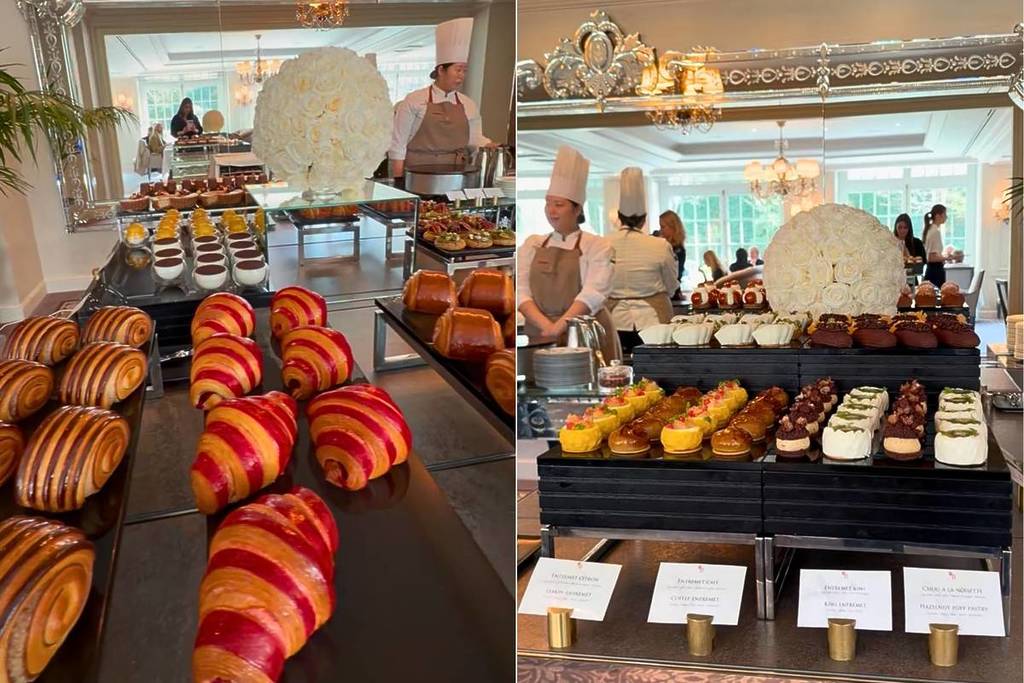 Déjà repus, il est pourtant impossible de résister à l’appel du buffet sucré, véritable bijou gourmand. Sur cet étal digne d’un tableau, viennoiseries, pâtisseries et macarons se déclinent en une palette aussi belle que savoureuse. Les grands classiques de la pâtisserie française sont proposés en version miniature, nous permettant de tout goûter. Tarte Tropézienne, flan pâtissier, entremets au chocolat ou à la noisette, chouquettes, éclairs ou encore Saint-Honoré composent un irrésistible festival sucré.