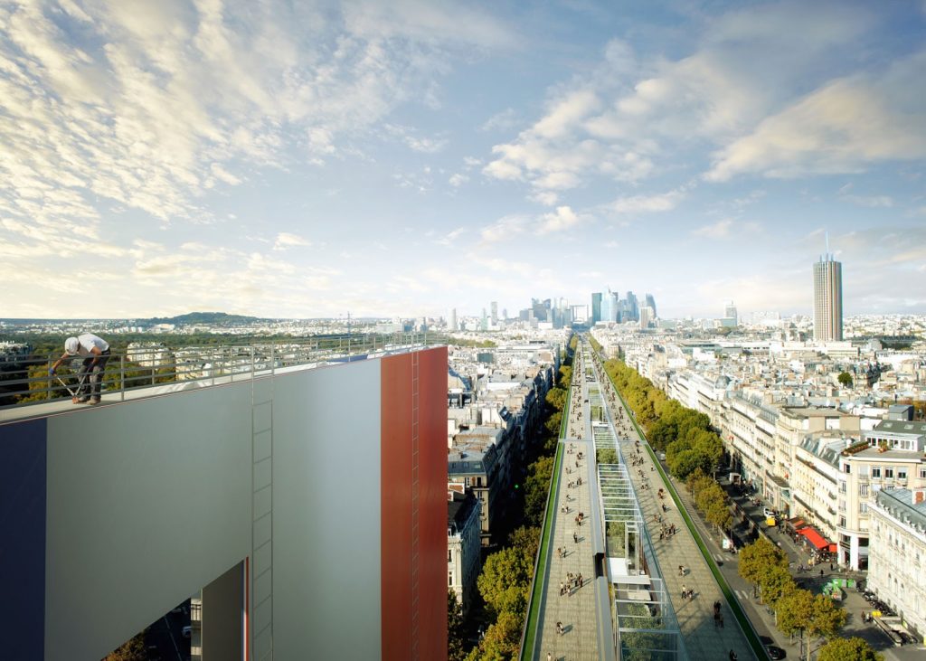 Pour Rescubika Créations, l’extension de ce monument historique qu’est l’Arc de Triomphe représenterait ainsi un nouveau lieu de culture, d’histoire et de mémoire permettant de réunir les parisiens et les touristes. En ce haut lieu de rencontres potentiel, la proposition architecturale de Rescubika comprend ainsi la création d’un restaurant panoramique et d’un café lounge, d’un gigantesque pont accessible à pieds ou à vélo reliant l’Arc de Triomphe à Neuilly ainsi que la création d’un gigantesque panneau en forme de U inversé, crée pour présenter diverses affiches numériques.