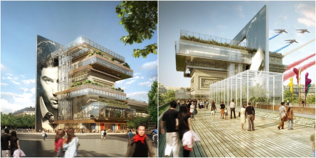 Ainsi « Coupé en deux » par un miroir, le monument reflèterait en outre l’autre moitié de la structure. D’une part, le monument conserverait donc toute la superbe de son architecture historique, tandis que d’autre part, l’Arc se verrait habillé d’étages en verre superposés, en vue d’apporter du design et de la modernité au monument, sans pour autant dénaturer son histoire. Pour l’heure, la construction de ce nouvel Arc de Triomphe imaginé par Rescubika Créations n’est pas à l’ordre du jour, notons qu’il s’agit seulement d’une proposition architecturale.