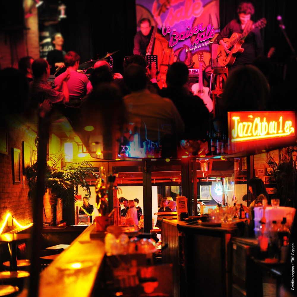 Criado em 1983 pelos Gibson Brothers, o Le Baiser Salé é um daqueles clubes parisienses onde o jazz é mais vivido do que ouvido. Assim que desce à cave, a atmosfera fica carregada de energia: metais escaldantes, solos ousados, ritmos latinos ou toques de funk misturam-se numa programação decididamente eclética. Aqui, experimenta-se, improvisa-se, dialoga-se. Jovens prodígios e músicos consagrados partilham o palco numa proximidade quase elétrica com o público, especialmente durante as jam sessions que podem fazer vibrar as paredes até altas horas da noite. Le Baiser Salé é essa alquimia rara entre exigência musical e liberdade total, um lugar onde cada noite tem o sabor do inesperado.
